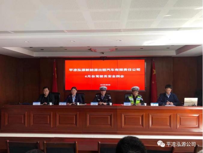 2021-04-294月28日下午,泓源新能源出租车公司召开“4月份安全例会”,邀请平凉市运管局城市客运服务科赵维刚、交巡警大队副队长刘高成、交巡警办公室主任张建勇现场培训指导,全体驾驶员参加了会议。会议通报了泓源新能源出租车公司4月份安全生产情况,对“五一”小长假期间