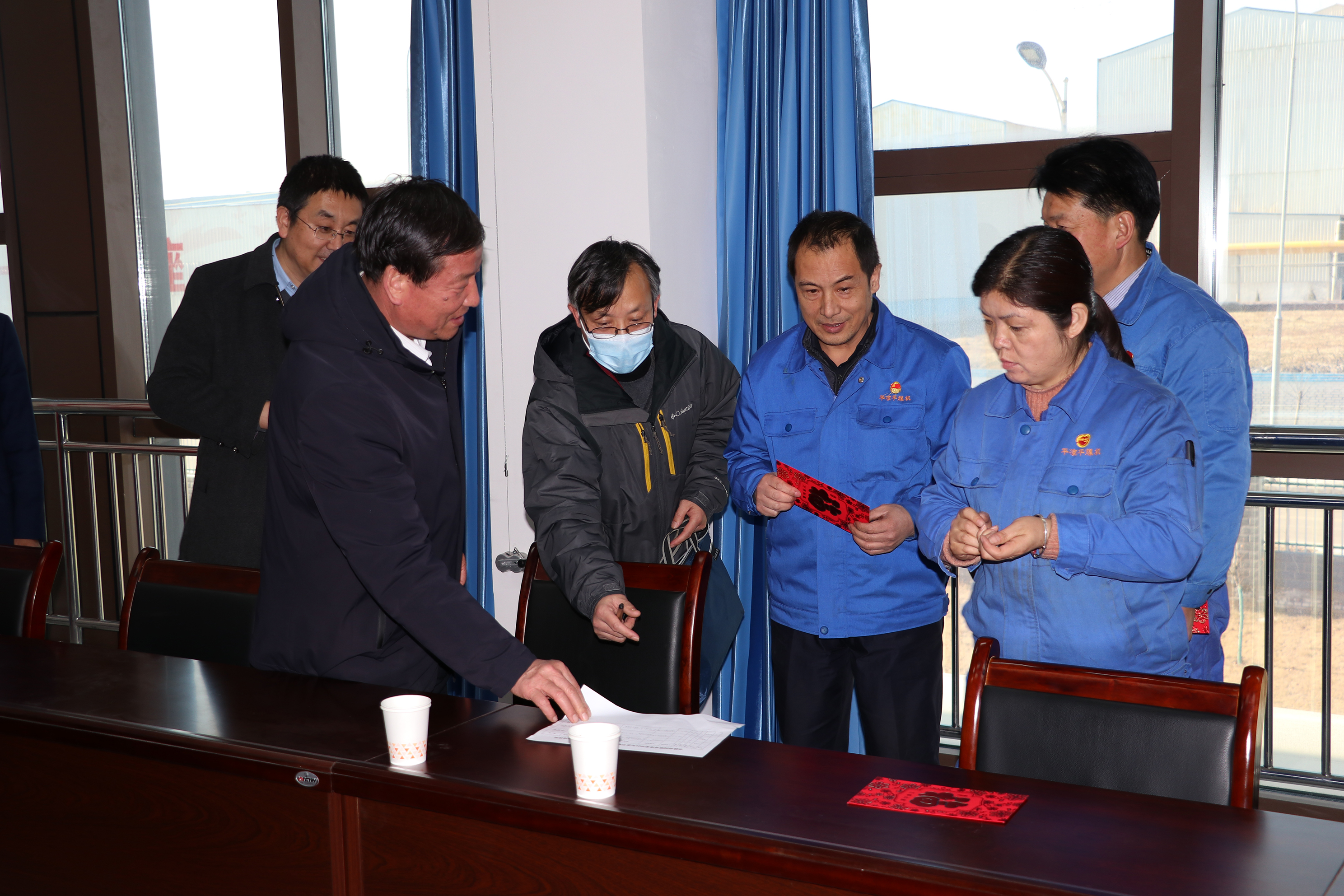 2021-02-10新春将至,2月10日上午,平凉工业园区党工委副书记、管委会主任、崆峒区委常委马春宁,泓源公司党委书记、董事长张鑫带队走访慰问园区机关保安门卫、司机、食堂工作人员,为他们送去园区党工委、管委会及泓源公司的关心关怀和新春祝福,并对他们一年来的辛勤劳动和付